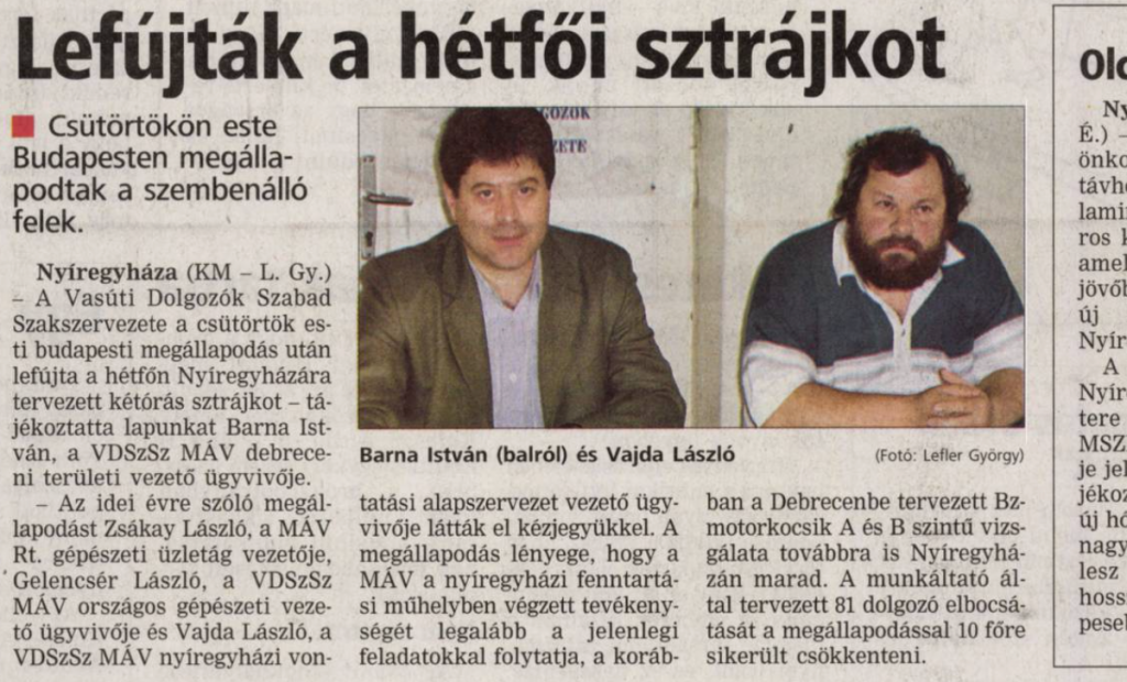A Vasúti Dolgozók Szabad Szakszervezetének (VDSZSZ) több területi érdekképviselete sztrájkot helyezett kilátásba a MÁV-nál történő leépítések és az elmaradt műszaki fejlesztések miatt. A MÁV-val történt korábbi megállapodás szerint a MÁV 2003. január és 2006 vége között létszámkiváltó beruházásokat hajtott volna végre, mely lehetőséget teremt 10-11 ezer ember elbocsátására, azaz 20 százalékos létszámleépítésre a vállalat hatékonyabb […]