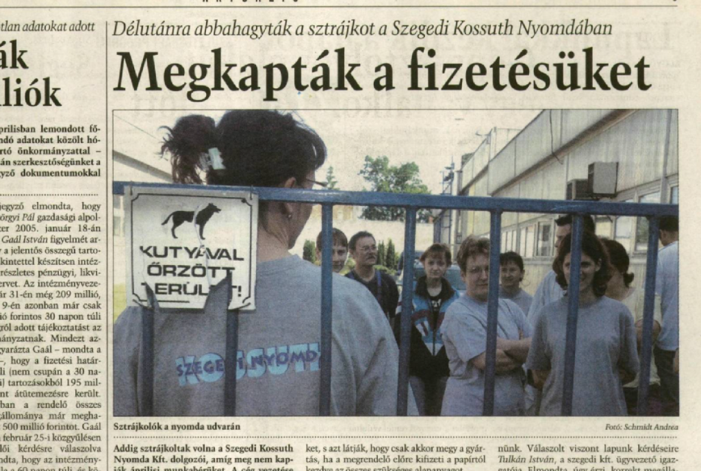 A szegedi Kossuth Nyomda Kft. dolgozói sztrájkba léptek, mivel a munkáltató több mint két hete nem utalta át a dolgozóknak járó áprilisi bérüket. A nyomdászok közlése szerint már korábban is akadoztak a cégnél a kifizetések. Május 20-ra először kétórás figyelmeztető sztrájkot hirdettek, annak sikertelensége miatt vágtak bele a teljes munkabeszüntetésbe. Ennek hatására viszont pár óra […]
