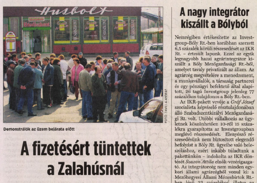 30-40 ember gyűlt össze a Zalahús zalaegerszegi üzeme előtt, hogy a munkavállalóknak ki nem fizetett bérei ellen tiltakozzanak. Az üzemet korábban egy nemzetközi cég vásárolta meg, amely bár ígérte a munkabérek kifizetésének rendezését, erre határidőt nem vállalt. Több munkavállalónak két havi munkabérrel tartozik a vállalat. Az új tulajdonos leépítésbe kezdett, a tiltakozásig több, mint 80 […]